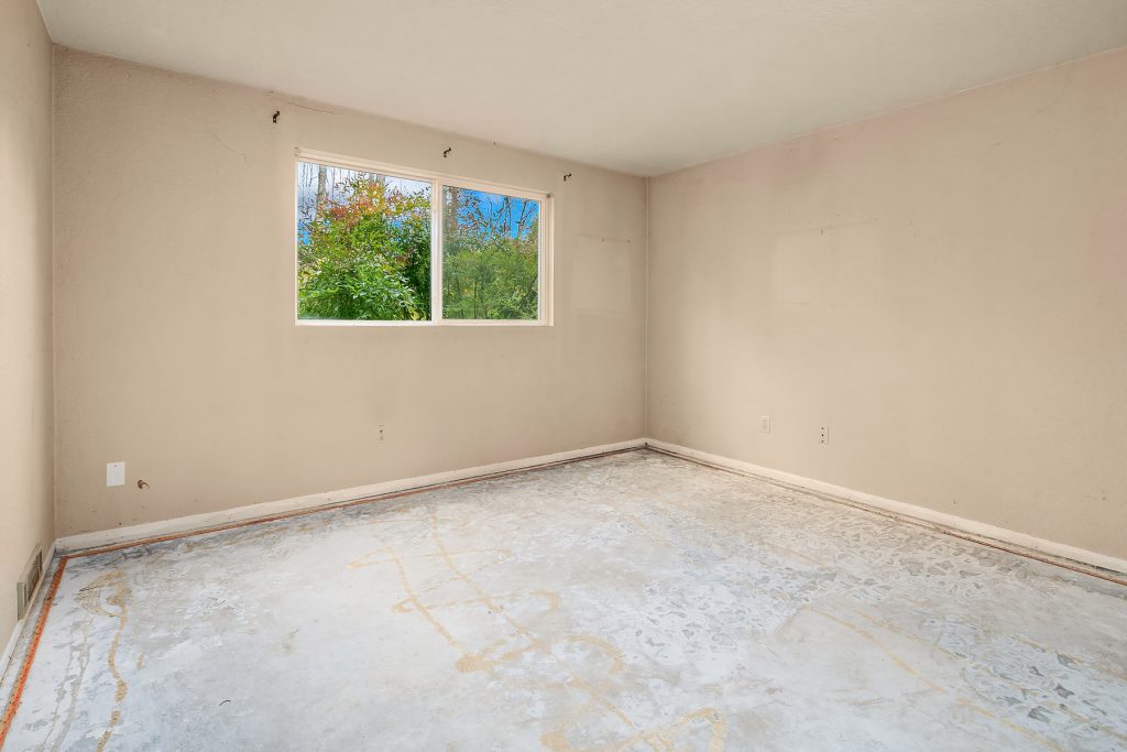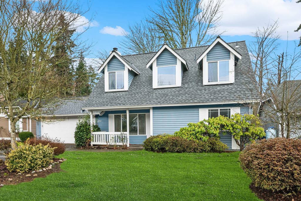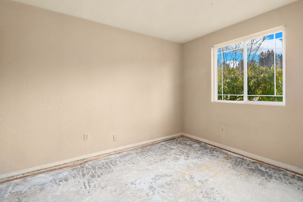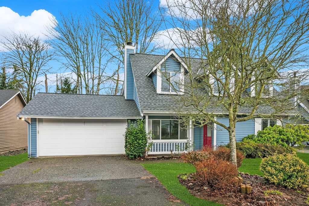Investor opportunity in a prime Mill Creek location. This single-family home is ready for cosmetic updates and value-add potential. Solid bones include a newer roof, wood siding, and a flat 6,000+ sq ft lot backing to a desirable greenbelt. Two bedrooms and full bath on the main level, living room with wood-burning fireplace, and kitchen ready for renovation. Upper level offers a large primary suite with attached bath, additional bedroom, and rec room. Two-car attached garage. Quiet cul-de-sac just blocks to Mill Creek Town Center, shopping, and dining. Estate sale—sold AS-IS. Cash only.
